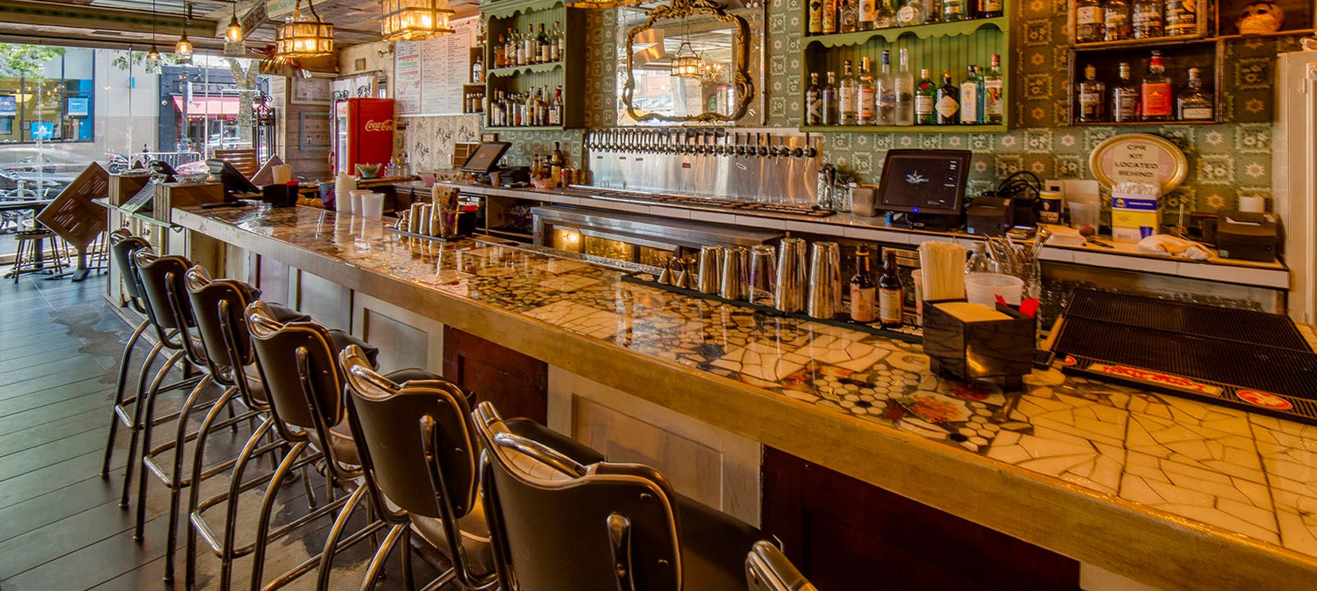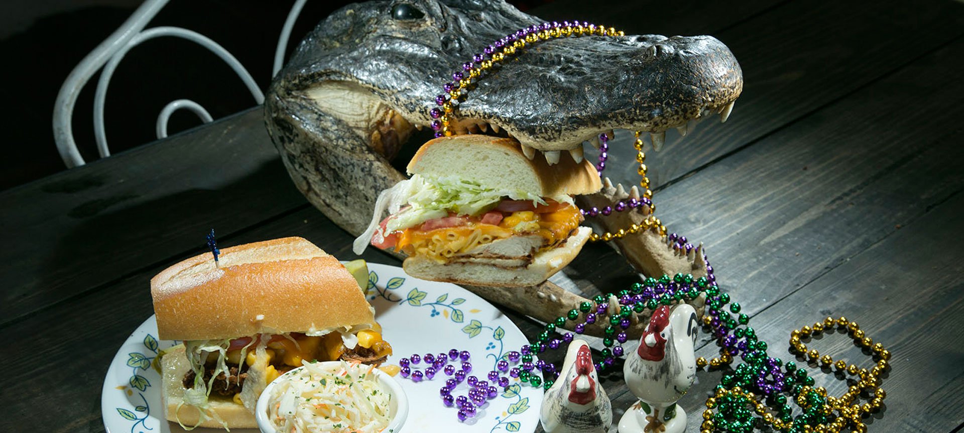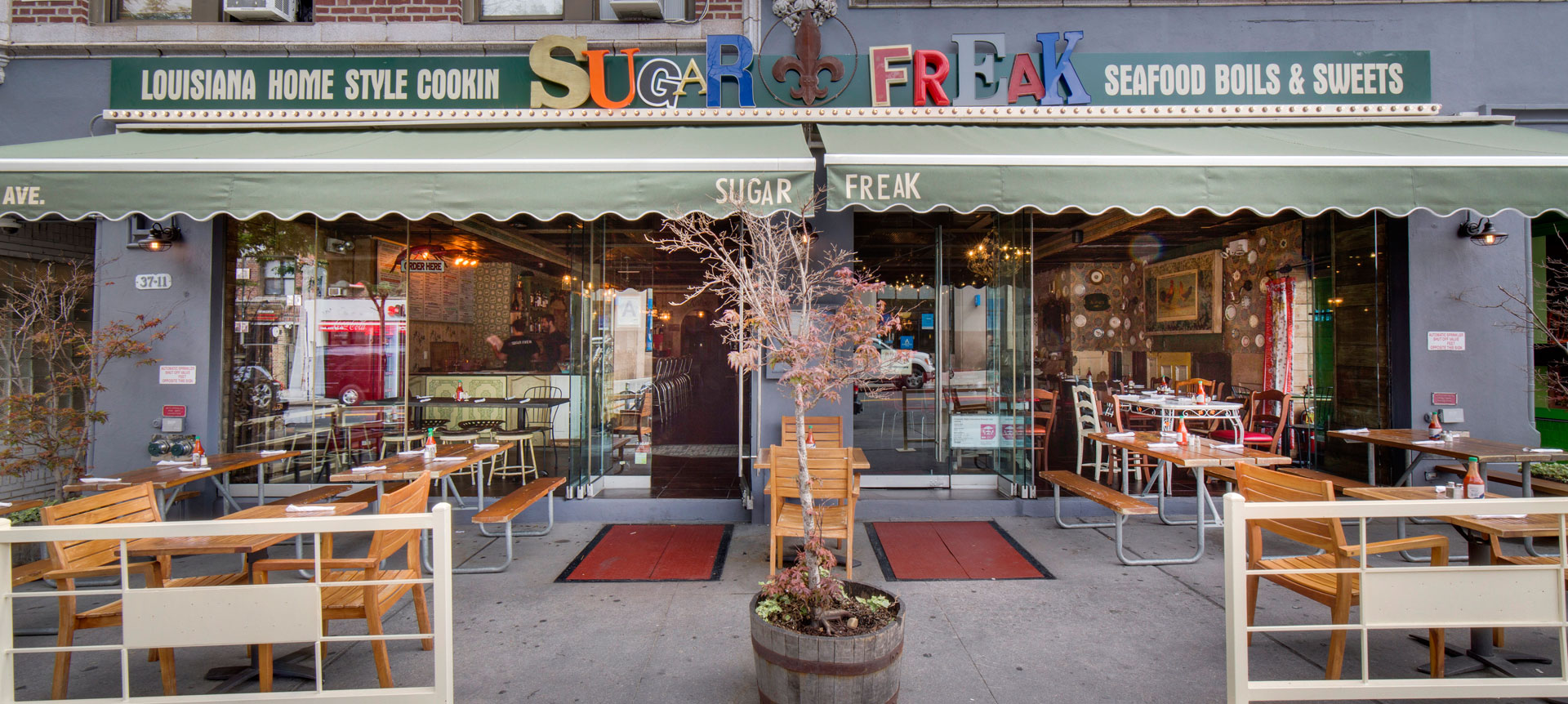 Creative interior and exterior design comes from collecting old and antique items such as plates, chairs, paintings, bottles, dressers, glasses, mirrors, that most of them kept in the family for few generations or picked up from antique stores through out Louisiana and New Orleans visits … The use of upcycling and recycling materials is what makes sugar freak a space full of soul and for us here a place full of memories…